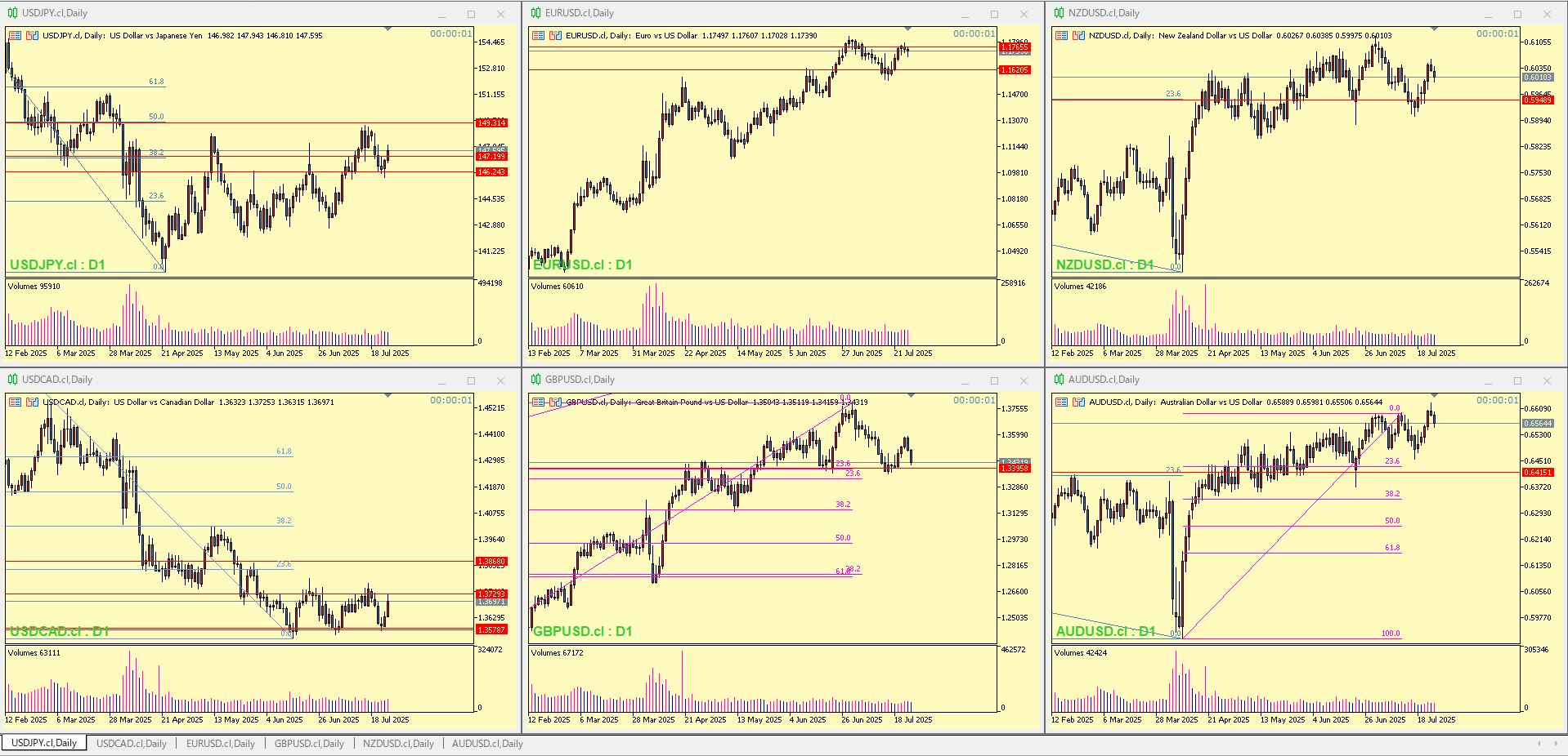クロスドル:USDJPY/USDCAD/EURUSD/GBPUSD/NZDUSD/AUDUSD