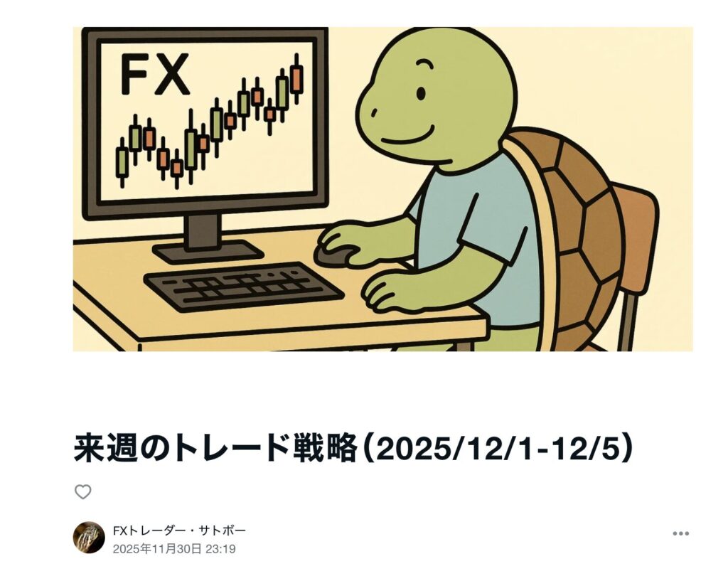 noteに今週(12/1 - 12/5)のトレード戦略を掲載しているので、ぜひチェックしてくれよな!!
